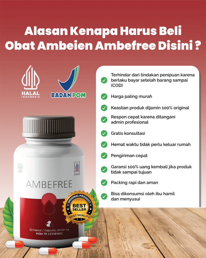 Obat Ambeien Ambefree merupakan Obat Ambeien Alami pertama yang terbuat dari bahan herbal tradisional. Obat Ambeien Ambefree efektif untuk menyembuhkan Sakit Benjolan Ambeien dan BAB Berdarah Karena Ambeien karena dibuat dengan bahan berkualitas dan Formula Obat yang 13x lebih ampuh untuk sembuhkan Ambeien. Dalam 3 Hari Sembuhkan Ambeien Anda Dengan Obat Ambeien Ambefree. Garansi Uang Kembali 100%
